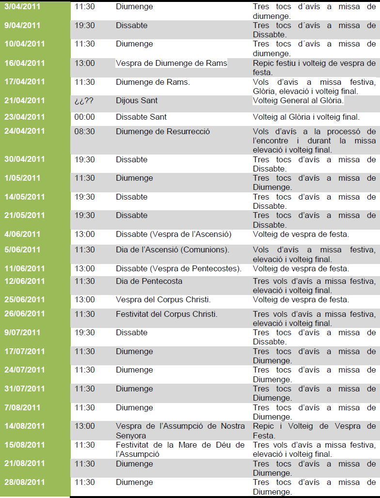 Un any més, ens trobem a les portes de les festes en Honor a la Mare de Déu de l´Assumpció i per tant, per a celebrar aquesta festivitat i dins de la gran varietat de actes que es troben programats, no podien faltar les campanes per a anunciar aquests esdeveniments, per tant, els tocs a realitzar seran els següents: